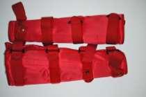 - Kørestol med diverse bespændinger (Ankel bespænding, lårremme, hofte sele, sternumsele, armsele for at undgå overstræk af led)